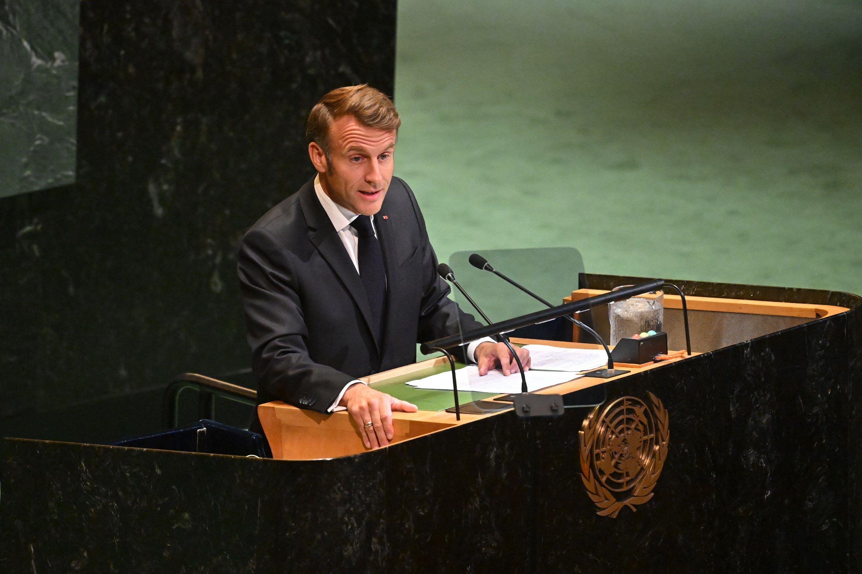 وفي مستهل خطابه بمؤتمر حل الدولتين في نيويورك برئاسة السعودية وفرنسا، أكد ماكرون من على منبر الأمم المتحدة أن "وقت السلام قد حان".