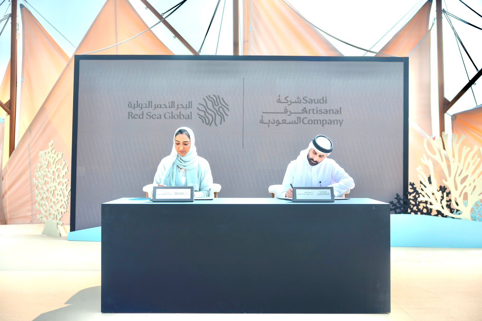 وتركّز المذكرة على دعم الحرفيين من مختلف مناطق المملكة عبر تطوير منتجاتهم وتحسين جودتها والارتقاء بتصاميمها من خلال برامج متخصصة في الابتكار والاحتضان وريادة الأعمال، إلى جانب التعاون في تصميم خط إنتاج للمنتجات الإقليمية بما يتناسب مع الهوية المحلية ويواكب الاحتياجات الحديثة. كما تشمل المذكرة تعاونًا في تلبية احتياجات شركة البحر الأحمر الدولية من الهدايا والمنتجات الحرفية والقطع الفنية والديكورات المُعتمدة على الحرفة السعودية، بما يُسهم في إبراز الجوانب الجمالية للمنتج الحرفي داخل مشاريع البحر الأحمر.