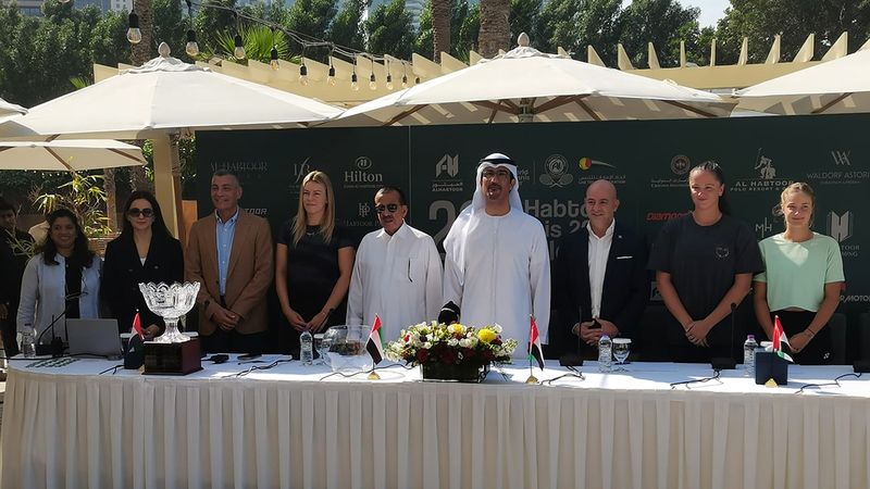 وشهد مقر البطولة، أمس، انعقاد المؤتمر الصحافي المخصص للكشف عن التفاصيل الفنية والتنظيمية وإجراء قرعة الدور الرئيس، وذلك بحضور مؤسِّس ورئيس مجموعة الحبتور ورئيس اللجنة العليا المنظمة للبطولة خلف الحبتور، والأمين العام لاتحاد الإمارات للتنس ناصر المرزوقي، ومديرة البطولة نورة بدوي، ومدير العمليات ومسؤول الحكام ليث العاني، ومدير الإعلام حسام الجيوسي، ومندوبة الاتحاد الدولي شيتال لايار، إلى جانب الحكم العام وعدد من اللاعبات المشاركات، وفي مقدمتهن المجرية دالما جالفي المصنفة الأولى في البطولة.