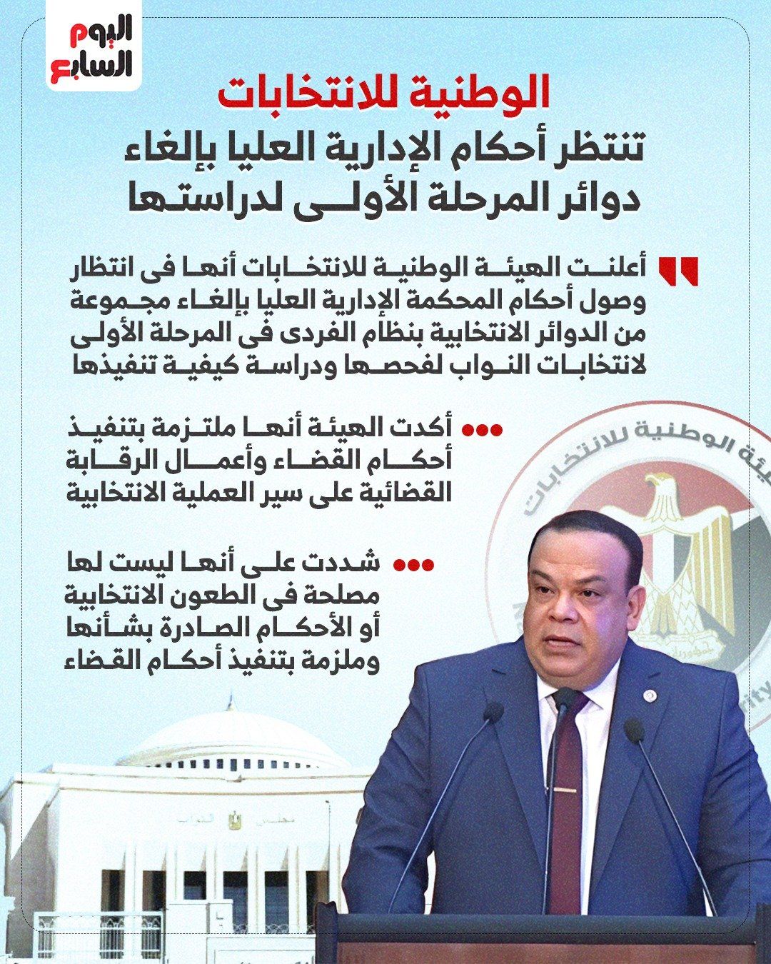 وأكدت الهيئة الوطنية للانتخابات أنه بالنسبة للدوائر التى أغلتها أحكام المحكمة الإدارية العليا أمس فمازالت الهيئة تدرس تلك الأحكام، مشيرة إلى أنها ملتزمة بتنفيذ أحكام القضاء.