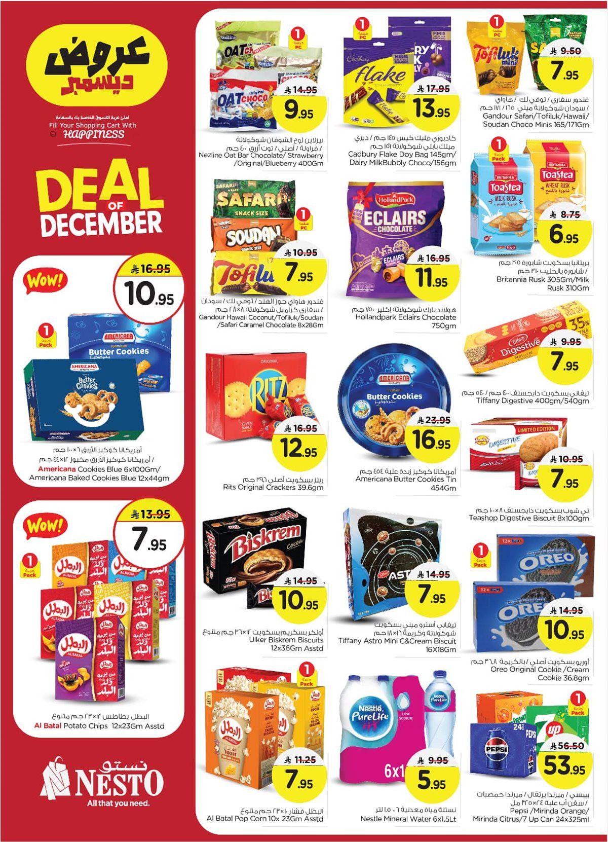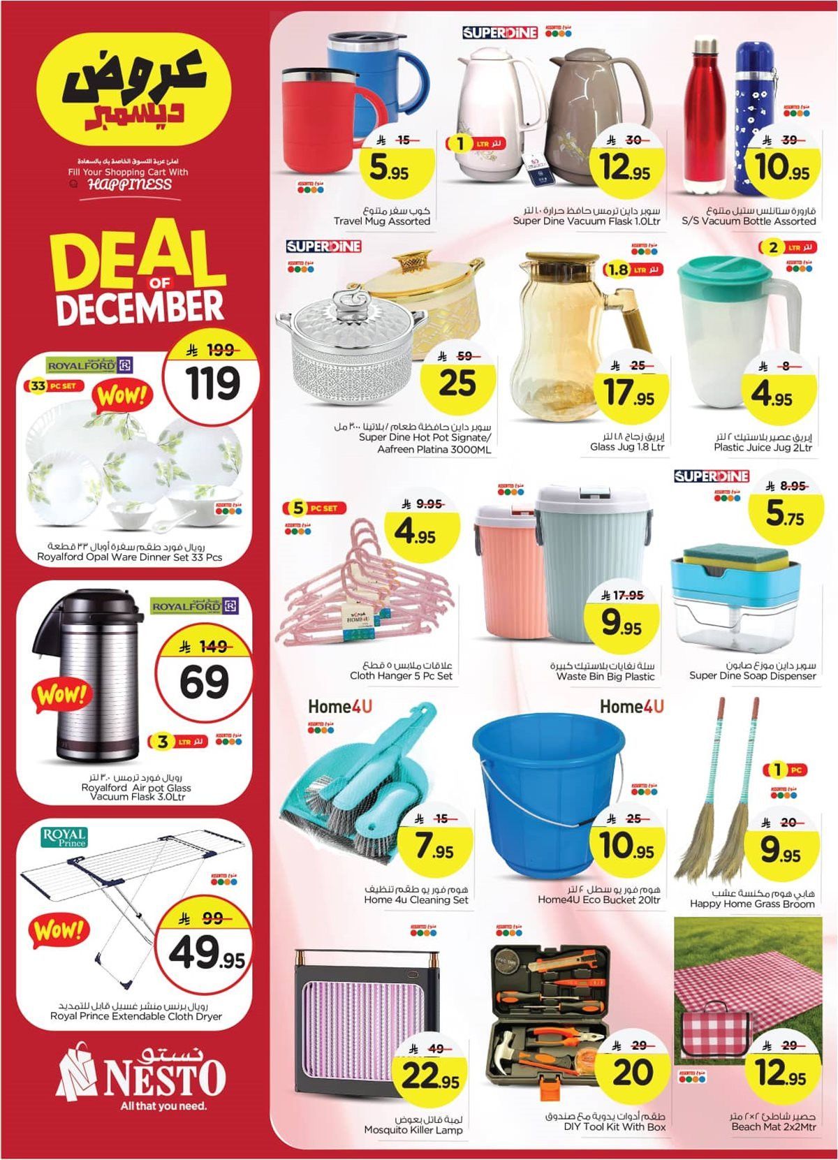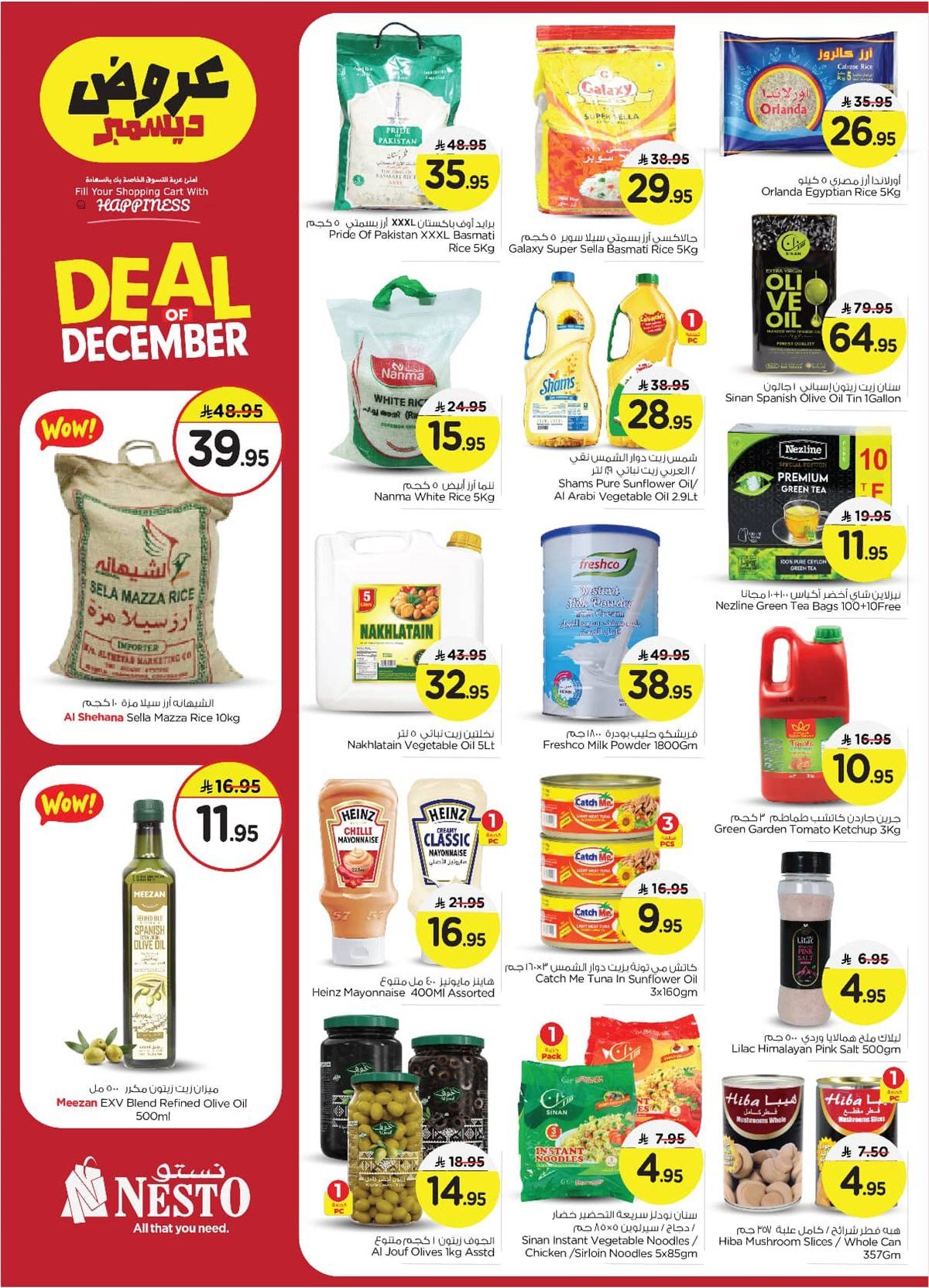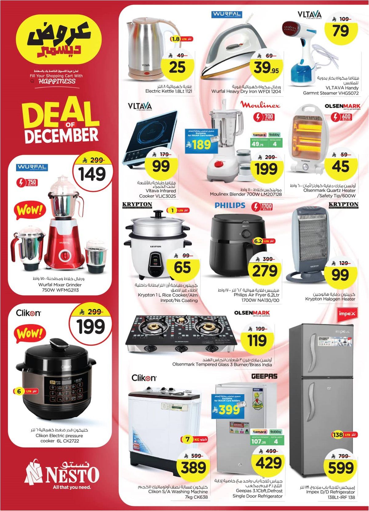عروض نستو الأحساء الأربعاء 3/12/2025 تضم مجموعة غذائية تشمل الكوسا الخضراء والجزر الطويل والبصل الأبيض والتفاح الأخضر والكمثرى الحلوة مع الجبن الشيدر وقطع الدجاج المتبل والفطائر ثم تشمل الأجهزة المنزلية صانع بيتزا كهربائي وغلاية ماء صغيرة وخلاط زجاجي كبير وصانع قهوة بالتنقيط ومقلاة هواء عميقة باقل الاسعار