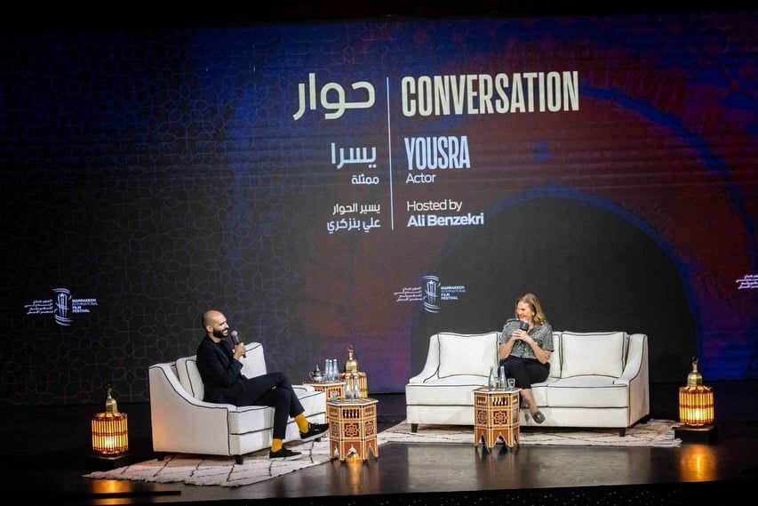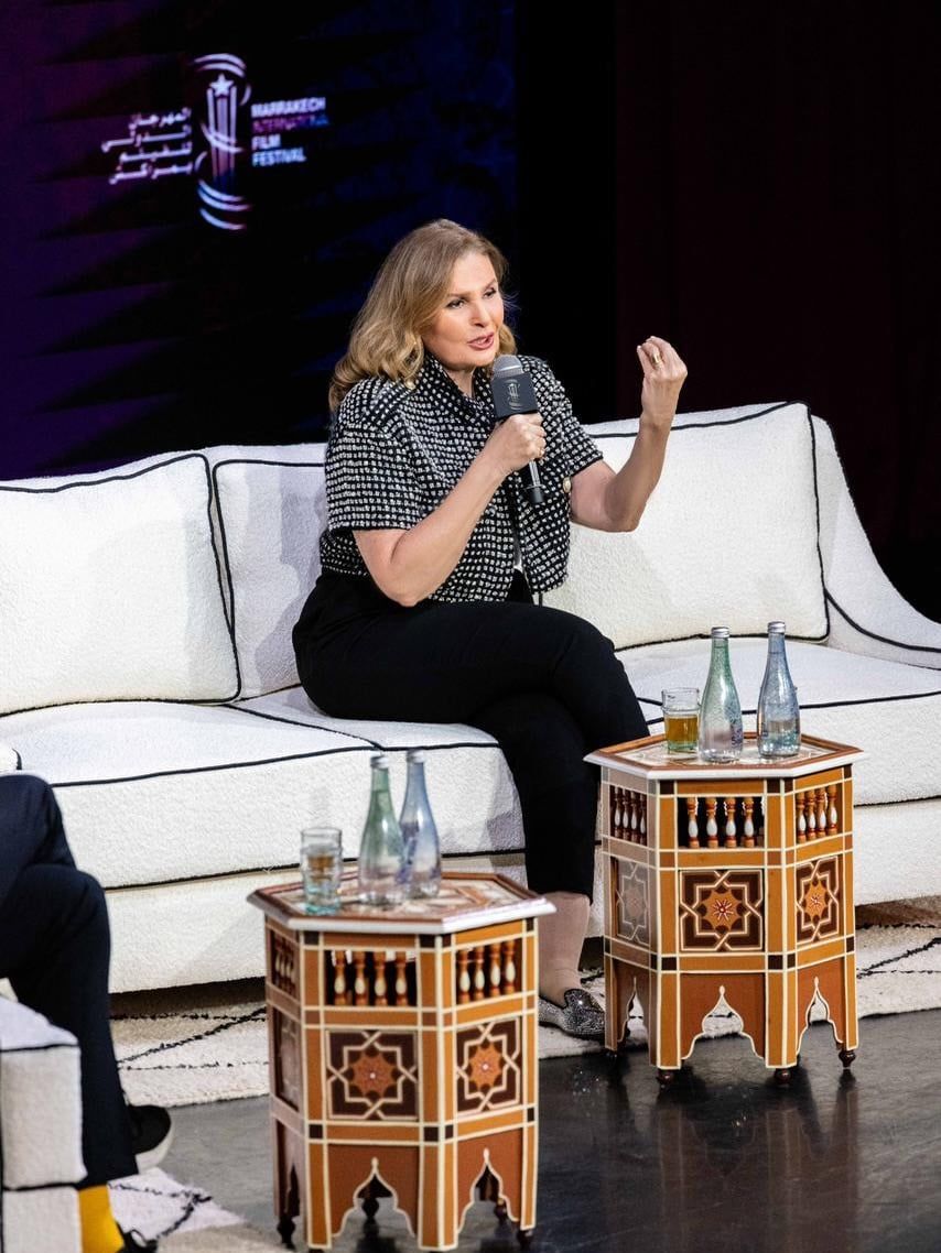 الفنانة يسرا خلال الجلسة الحوارية لمهرجان مراكش