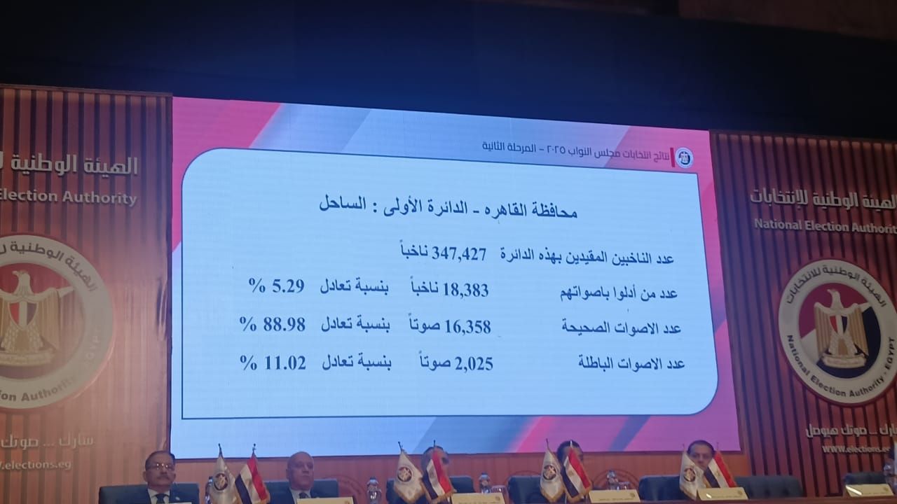 الثلاثاء، 02 ديسمبر 2025 02:19 معقدت الهيئة الوطنية للانتخابات برئاسة القاضي حازم بدوي، منذ قليل مؤتمرا صحفيا، نتيجة الجولة الأولي للمرحلة الثانية من انتخابات مجلس النواب 2025، التي جرت في 13 محافظة وتنافس فيها 1316 مرشحا بالنظام الفردي.