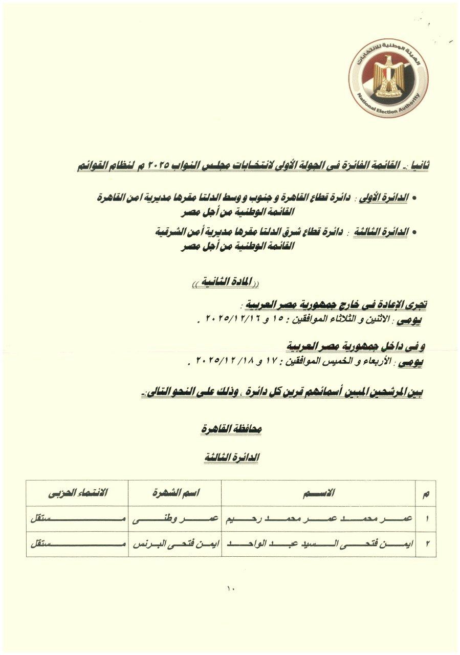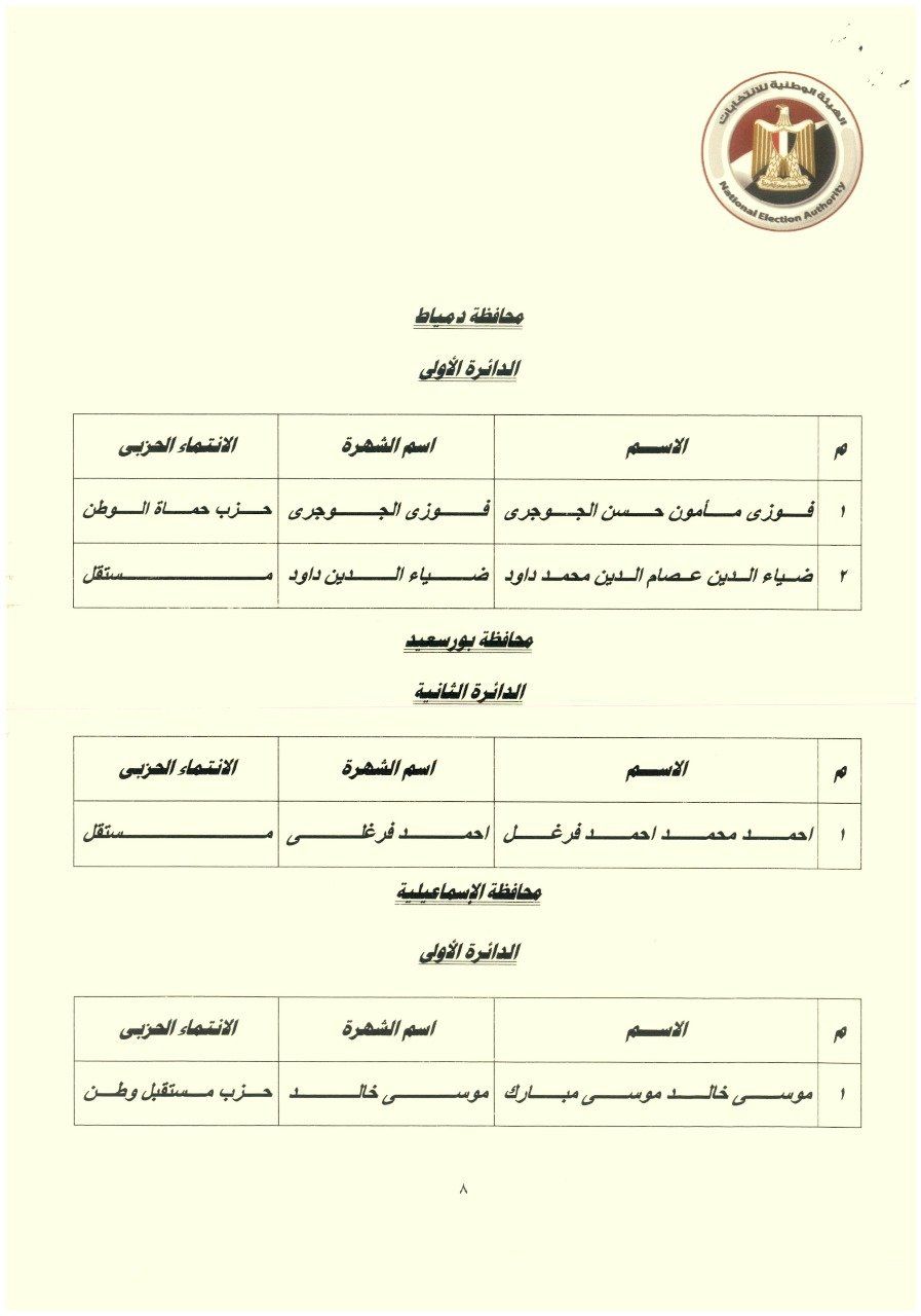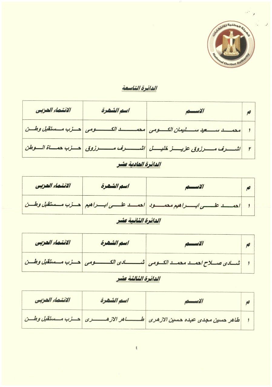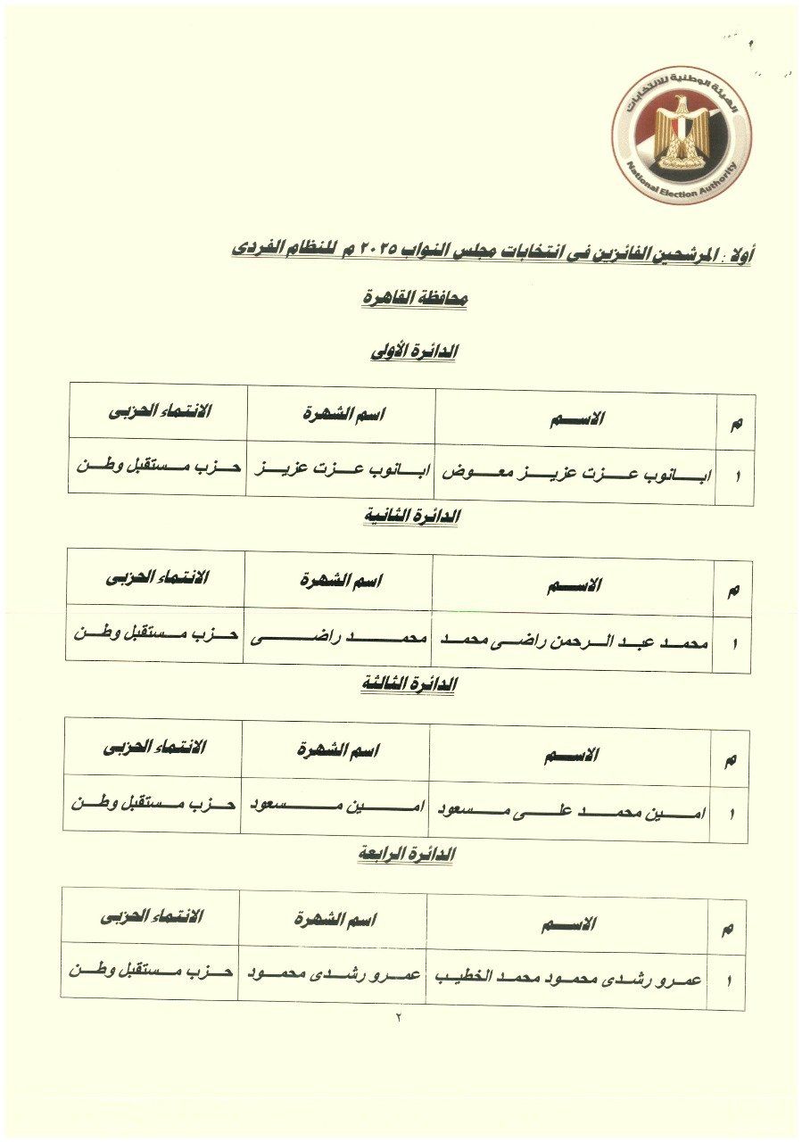 حصل دوت مصر على القائمة الكاملة بأسماء المرشحين الفائزين بالنظام الفردى بالمرحلة الثانية لانتخابات مجلس النواب التى أعلنت الهيئة الوطنية للانتخابات النتيجة الرسمية.
