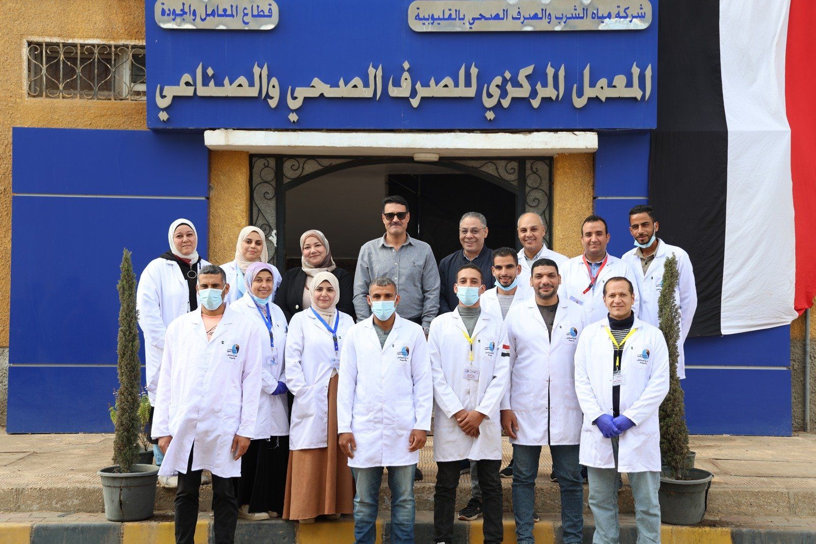 رئيس مياه القليوبية يتوسط العاملين بالمعمل