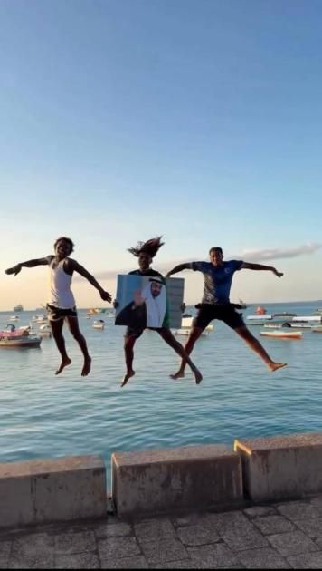 وظهر في مقطع الفيديو، مجموعة من الشباب في مدينة زنجبار، يحملون صورة كبيرة لصاحب السمو الشيخ محمد بن زايد آل نهيان، رئيس الدولة، حفظه الله، ليعلو بعدها النشيد الوطني لدولة الإمارات، ثم يقفزوا بالتوالي إلى البحر، كما حمل أحدهم لوحة أخرى كُتب عليها باللغة الإنجليزية «مع الحب من زنجبار».