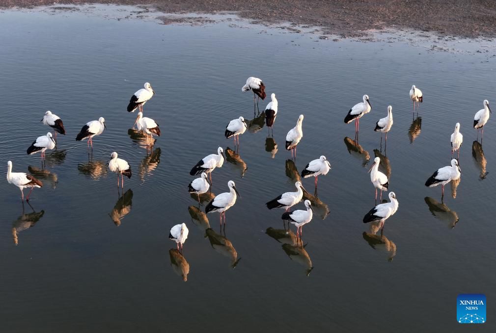 رصدت كاميرا طائرة مسيرة تواجد طائر اللقلق الأبيض خلال تواجد فى بحيرات الصين، حيث البحث عن الطعام بعد رحلة معاناته من الطيران، وذلك نقلا عن وكالة الأنباء الصينية شنخوا.