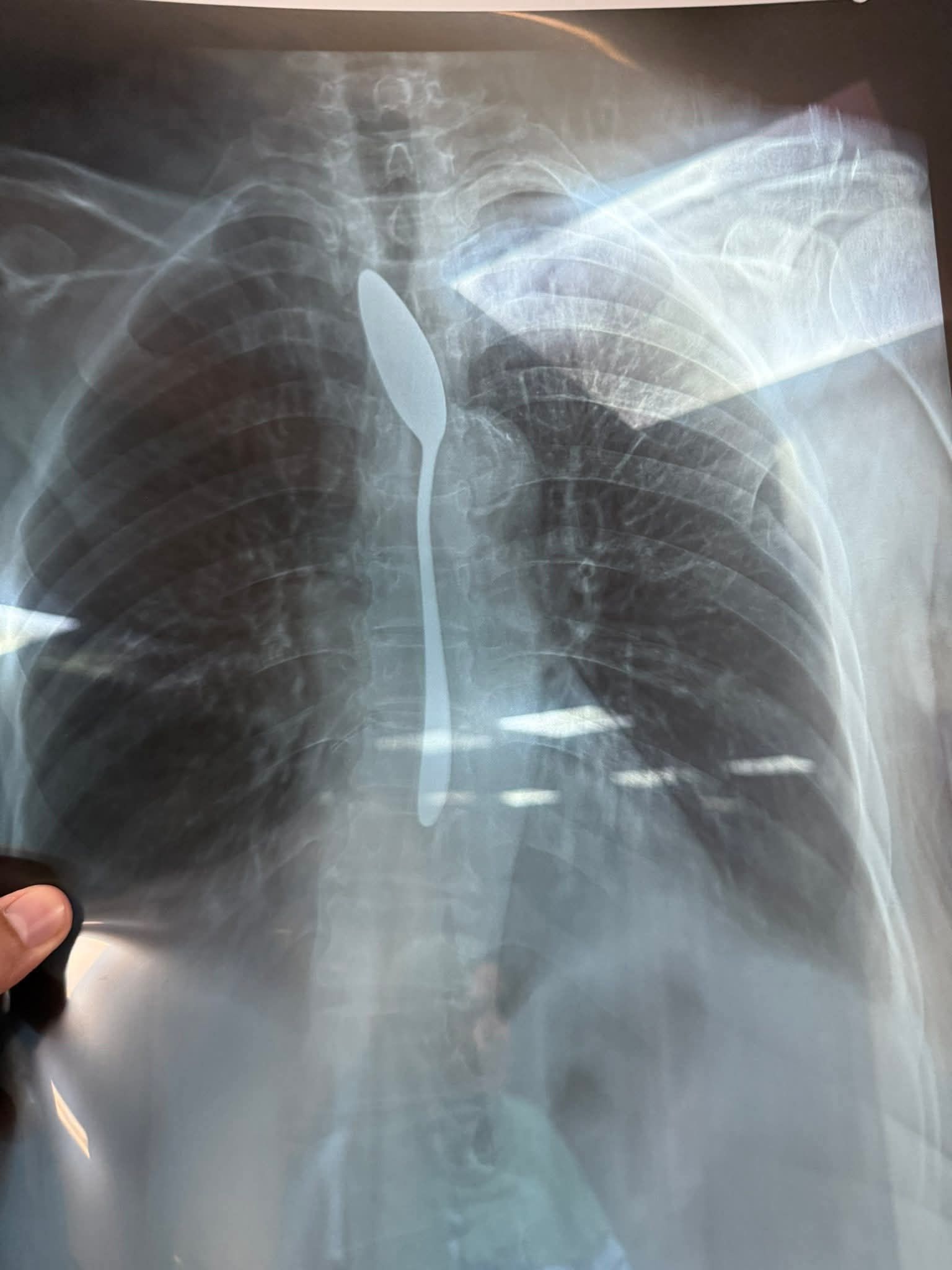 على الفور تم إجراء إشاعه للسيدة وتبين وجود ملعقة، على الفور تم تجهيز السيدة وتم إجراء الجراحة لها داخل غرفة العمليات في وقت قياسي من 5 لـ 7 دقايق، وتم استخراج الملعقة.