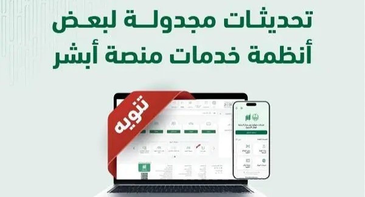 أعلنت منصة وزارة الداخلية الإلكترونية "أبشر" عن تنفيذ تحديثات مجدولة لبعض أنظمتها يوم الجمعة المقبل، الموافق 5 ديسمبر 2025، تبدأ من الساعة 12 صباحًا وتستمر حتى الساعة 12 ظهرًا.