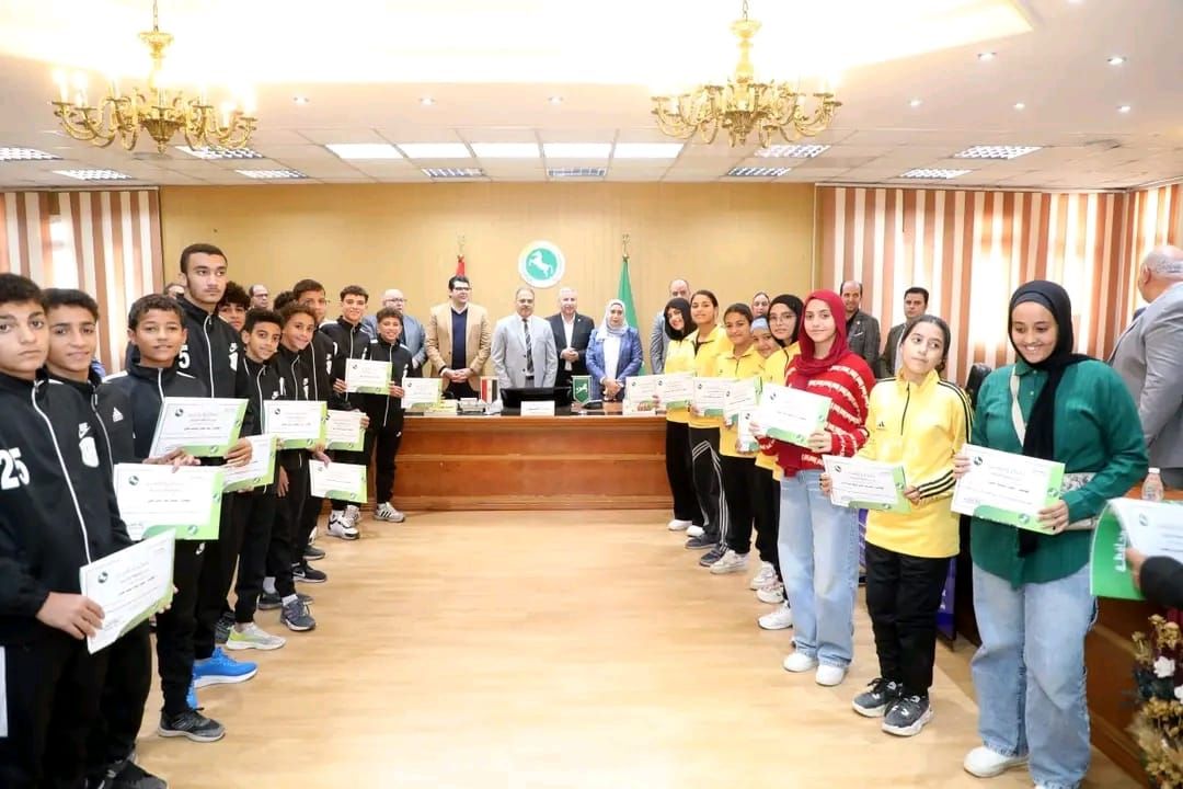 ومن جانبه قدم وكيل وزارة التربية والتعليم الشكر لمحافظ الشرقية لدعمه الدائم والمستمر للرياضيين من طلاب المدارس، وحرصه على تكريم فريق الشرقية للناشئين ( بنين – بنات ) التابع للمديرية والفائز بالمركزين الأول والثاني ببطولة الجمهورية للمدارس واستطاع التأهل للمشاركة ببطولة شمال أفريقيا بمنحهم شهادات تقدير والذي يعكس اهتمام الدولة بقيادة الرئيس عبد الفتاح السيسي بالرياضة وتنمية قدرات النشء ضمن رؤية مصر 2030.