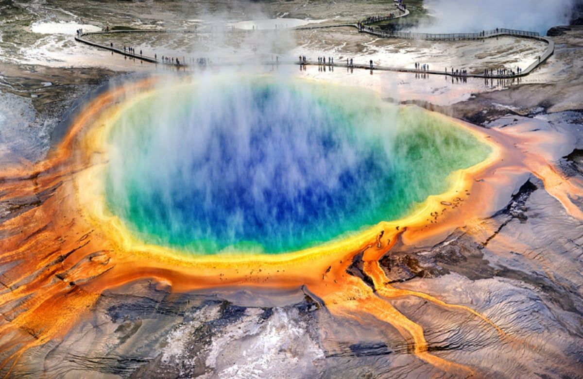وتقع كالديرا يلوستون، وهي منخفض بركاني ضخم بعرض 72 كيلومترًا، نتيجة ثوران كارثي قبل نحو 640 ألف عام. وإذا ثار مجددًا، قد يُغطي الرماد الناتج ثلثي مساحة الولايات المتحدة، مما يتسبب في دمار واسع النطاق ويؤثر على الملايين.