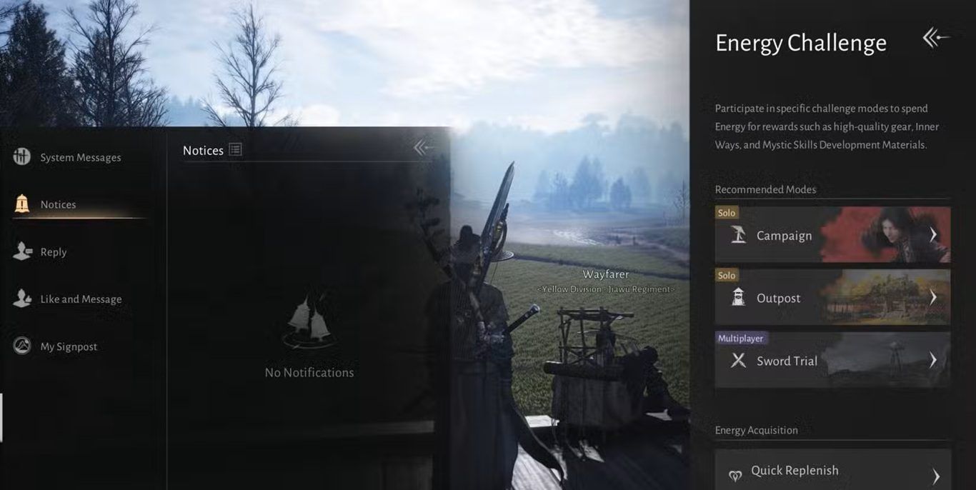 في لعبة Where Winds Meet هناك نظامان مختلفان للطاقة (Stamina)، أحدهما فقط يُسمى بالفعل Stamina. كل نظام منهما يُستخدم في جانب مختلف تمامًا من أسلوب اللعب، مما يجعل من النادر أن تنفد طاقتك. هذان النظامان هما: طاقة التحدي (Challenge Energy) و طاقة التصنيع (Crafting Stamina).
