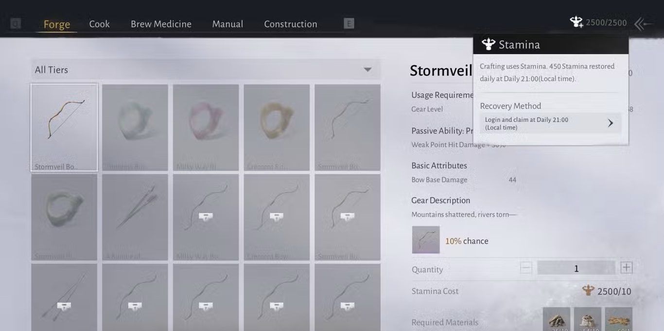عندما يتعلق الأمر بزيادة الطاقة (Stamina)، فإن النظام الوحيد القابل للزيادة هو طاقة التحدي (Challenge Energy). أما طاقة التصنيع (Crafting Stamina) فلها حد أقصى ثابت يبلغ 2500 نقطة ولا يمكن تغييره.