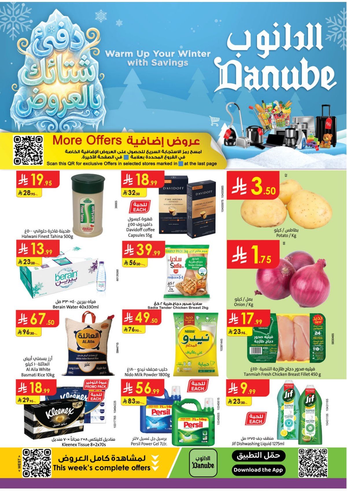 عروض الدانوب جدة الخميس 4-12-2025 تضم مجموعة غذائية تشمل الكوسا الخضراء والطماطم الكبيرة والبصل الأخضر والبرتقال الكبير والعنب الأبيض مع الجبن الكريمي وقطع اللحم البقري المشوي والفطائر الطازجة ثم تشمل الأجهزة المنزلية غلاية ماء صغيرة وخلاط يدوي سريع و موقعنا بيغطي كمان عروض بنده السعودية و غيرها من الشركات و المتاجر فقط ابقوا معنا .