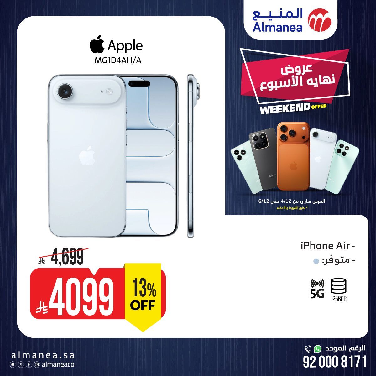عروض نهاية الأسبوع على الجوالات من المنيع ساري حتى 6 ديسمبر 2025 افضل العروض الحصرية على الجوالات الحديثة في اسواق المنيع و ضمن جميع الفروع و المتجر الالكتروني لا تفوتوا افضل التخفيضات و تسوقوا اجهزتكم الحديثه