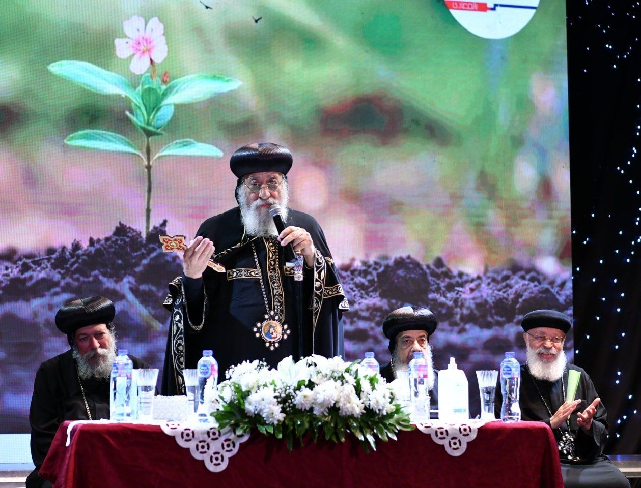 وفي كلمته هنأ قداسة البابا البابا الخريجين، وقدم التحية لأعضاء هيئة التدريس وإدارة المعهد، وأثنى على قيمة الوفاء التي ضعفت لدى البعض في أيامنا هذه. ودعا قداسته إلى عمل كورس متخصص لغرس روح الوفاء فى النفوس.
