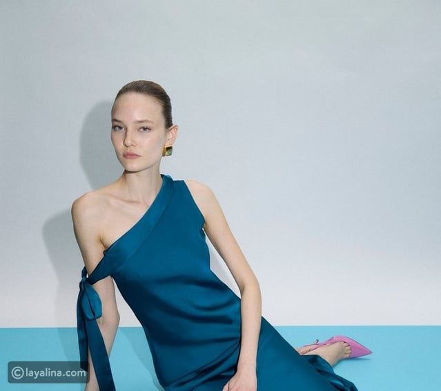 - تبدأ المجموعة بنبرة تُعلن أن هناك تحوّلًا يحدث. فالفستان الأسود المتوسط من الساتان، بقصته المائلة وحركته الانسيابية، يأتي كتصريح مباشر بأن لغة العلامة لم تعد تعتمد فقط على البنية الضيقة. الحركة، وليس الانكماش، هي العنوان الجديد.
