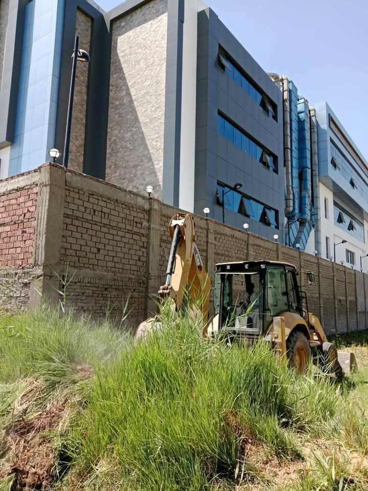 نزع الحشائش والنباتات الضارة أسفل سور المستشفي