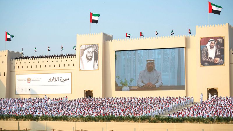 من مختلف مناطق الدولة انطلقت جموع أبناء القبائل في مشهد وطني مهيب، للمشاركة في «مسيرة الاتحاد»، حيث تلاقت القلوب والأحلام على درب واحد، هو درب الانتماء والوفاء للوطن وقادته..