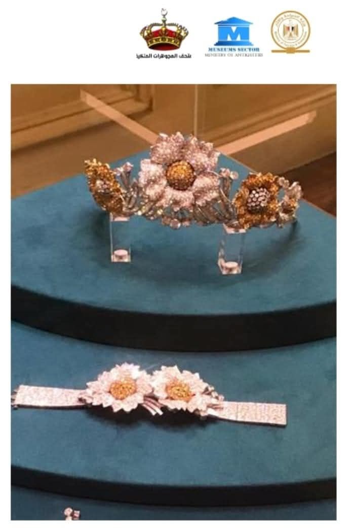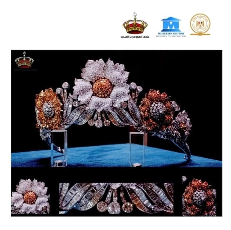 - تاج الملكة فريدةهو عبارة عن تاج مصنوع من البلاتين والذهب المرصع بالماس الأبيض والأصفر، ويتكون من خمسة زهور متدرجة الأحجام، يوجد مع التاج أسورة مرصعة بالماس تتكون من زهرتين من البلاتين قلبيهما من الذهب.