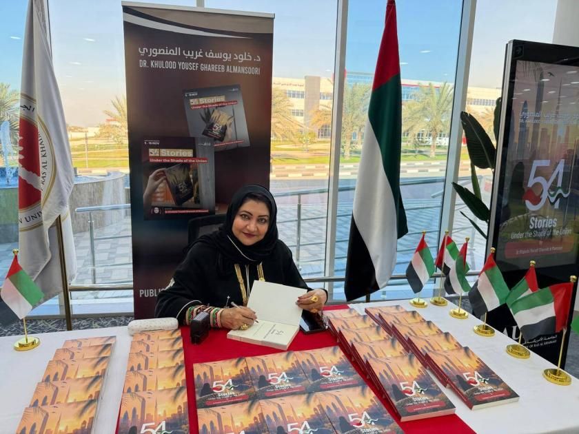 وقّعت الدكتورة خالدة يوسف غريب المنصوري، أستاذ مساعد في اللغويات بالجامعة الأمريكية في رأس الخيمة، مستشار رئيس الجامعة بشأن الثقافة والمجتمع، أحدث أعمالها الأدبية باللغة الإنجليزية تحت عنوان «54قصة في ظل الاتحاد»، في مكتبة الجامعة، تزامناً مع احتفالات الدولة بعيد الاتحاد.