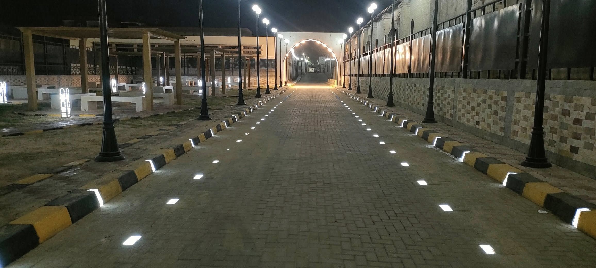 6- تبليط كامل للشارعين ببلاط الانترلوك العادي والمضيء.