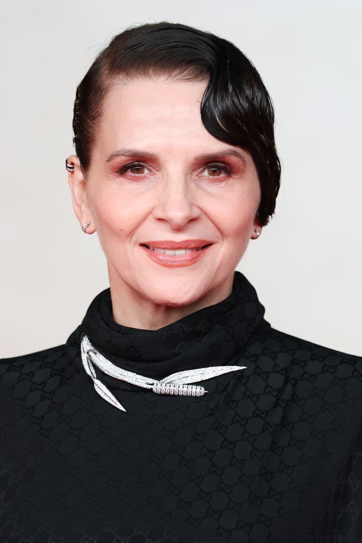 النجمة العالمية جولييت بينوش Juliette Binoche اختارت مكياج سموكي برونزياً منح عينيها عمقاً درامياً مع لمسات لامعة خفيفة على الجفن السفلي. وبشرتها جاءت طبيعية بمظهر مخملي، فيما اكتفت بأحمر شفاه نيود خوخي مشرق.