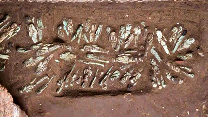 وقال عالم الآثار الفرنسي، فريدريك بايرودو، رئيس بعثة حفريات تانيس، إن الاكتشاف جرى في التاسع من أكتوبر الماضي، داخل قبر ضيق يحتوي على تابوت غرانيت ضخم غير منقوش، مشيراً إلى أن التماثيل كانت مرتبة بعناية على شكل نجمة حول حفرة شبه منحرفة، وفي صفوف أفقية في قاعها، ما يعكس طقوس دفن متقنة تعود إلى تلك الحقبة.