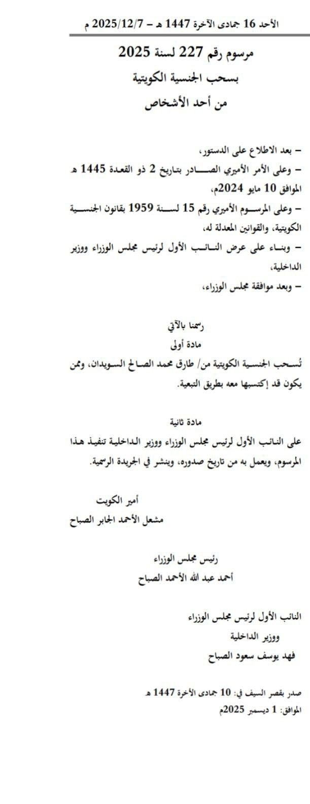 تفاصيل المرسوم الأميري بسحب الجنسية