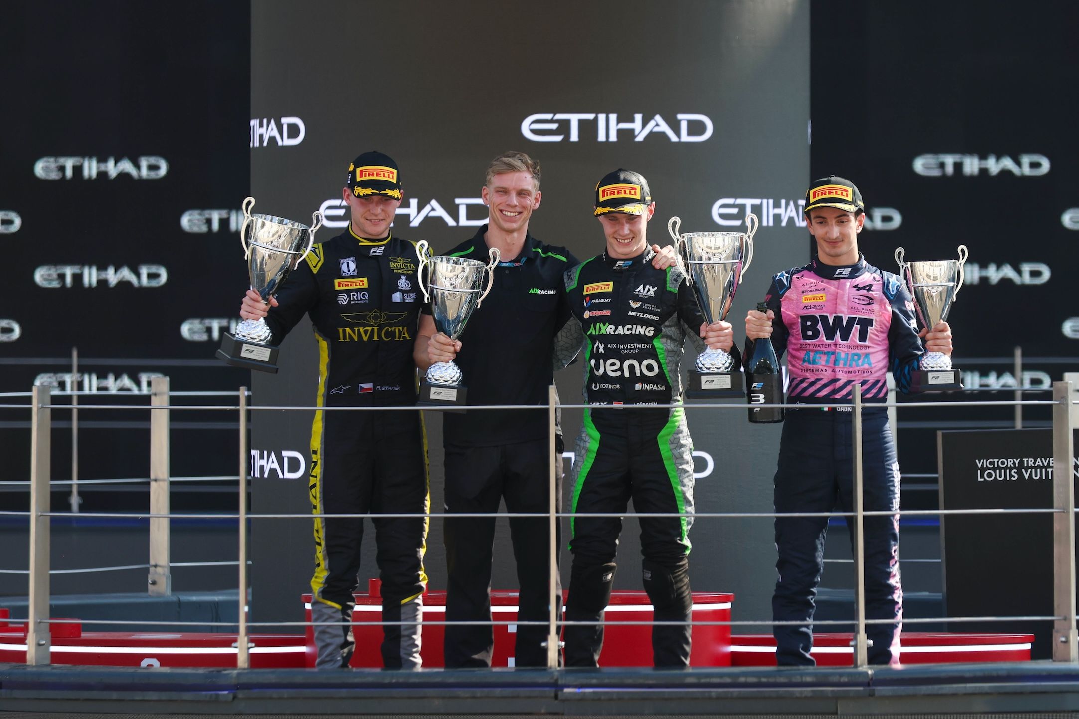 وعلى منصة التتويج، انضم إلى دوركسن كل من رومان ستانيك وغابرييل ميني، اللذين احتلا المركزين الثاني والثالث على التوالي بعد سباق قوي شديد المنافسة على حلبة مرسى ياس. وشهد السباق معاقبة دينو بيغانوفيتش بخمس ثوانٍ، مما أدى إلى تصنيفه في المركز الرابع بعد أن كان يحتل موقعاً متقدماً على منصة التتويج، في حين أكمل أوليفر جوته قائمة الخمسة الأوائل في ختام الموسم.