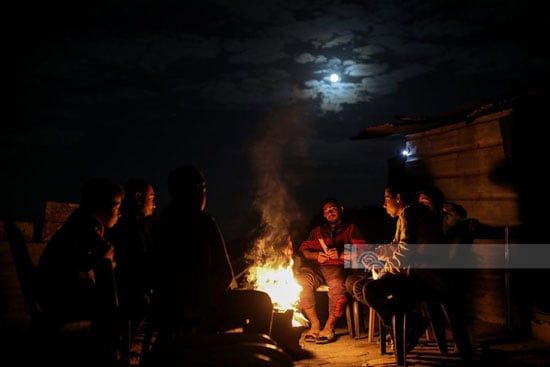 إشعال النيران داخل الخيام للحد من البرد القارص