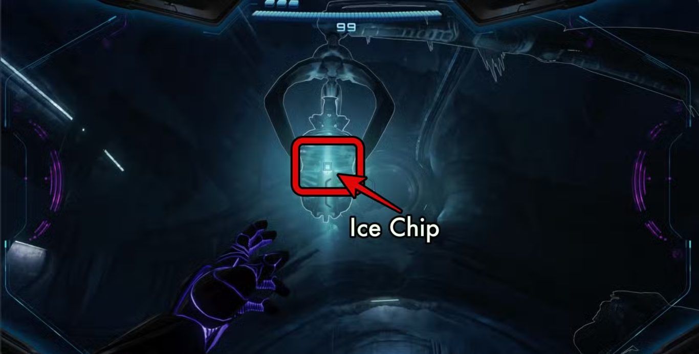 عند وصولك إلى القاعة الأولى داخل Ice Belt ورؤية الجسم المتوهج بالضوء الأزرق ستظن في البداية أنه يمكنك جمع Ice Chip مباشرة ولكن اللعبة لا تتيح لك الحصول عليه في هذه اللحظة لأن تصميم Metroid Prime 4 Beyond يعتمد على التدرج في القدرات وإجبار اللاعب على خوض تحديات إضافية قبل الحصول على الترقية الأساسية التي يحتاجها للتقدم. يظهر Ice Chip في هذه القاعة بوصفه هدفا مستقبليا يجب العودة إليه لاحقا بعد استكمال مجموعة من المهام داخل الزنزانة وهو ما يضيف إحساسا قويا بالترقب ويمنح اللاعب دافعا لاستكشاف Ice Belt بالكامل.