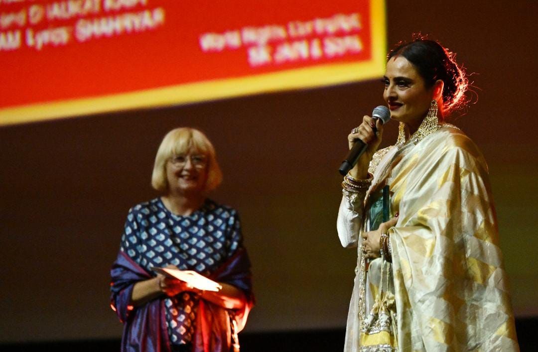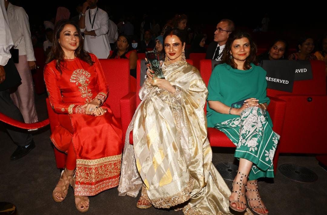 الأحد، 07 ديسمبر 2025 11:32 مشهد عرض فيلم “أومراو جان”، ضمن فعاليات اليوم الرابع للدورة الخامسة من عمر مهرجان البحر الأحمر تكريم النجمة الهندية ريخا، حيث سلمتها الجائزة فيونوالا هاليجان مديرة االبرامج الدولية.