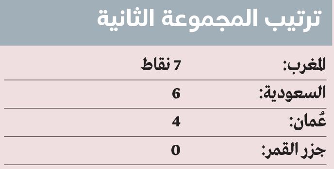 وفي المباراة الثانية ضمن المجموعة ذاتها، حقق منتخب عُمان فوزاً على نظيره جزر القمر بنتيجة 2-1، ليصل إلى أربع نقاط في المركز الثالث، غير أنه لم يكن كافياً لمزاحمة المتصدرين على بطاقتَي التأهل، بينما ودّع منتخب جزر القمر المنافسات بعدما ظل من دون رصيد من النقاط.