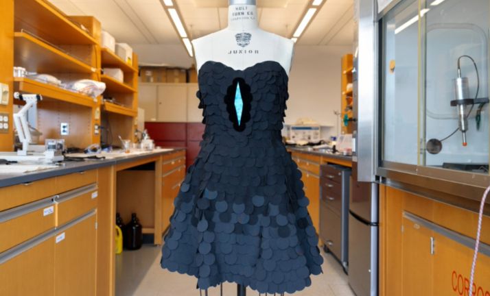 والنتيجة هي قماش يبقى شديد السواد حتى عند رؤيته من زوايا واسعة، على عكس المواد شديدة السواد الأخرى التي لا تعمل إلا بشكل مباشر. ومن ثم قررت جامعة كورنيل تطبيق هذا اللون عمليًا في سياق يفهمه الشخص العادي، فصنعوا منه فستانًا مستوحى من طائر البندقية الرائع، بما في ذلك قطعة صدر زرقاء/خضراء مشعة.