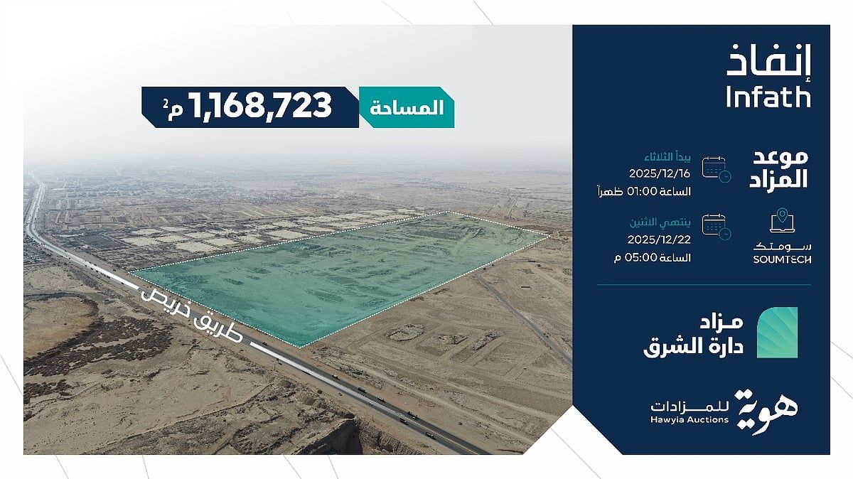 تعلن شركة هوية للمزادات وبإشراف مركز الإسناد والتصفية «إنفاذ» عن إقامة مزاد "دارة الشرق" الإلكتروني من 16 إلى 22 ديسمبر عبر المنصة الوطنية للمزادات سومتك.