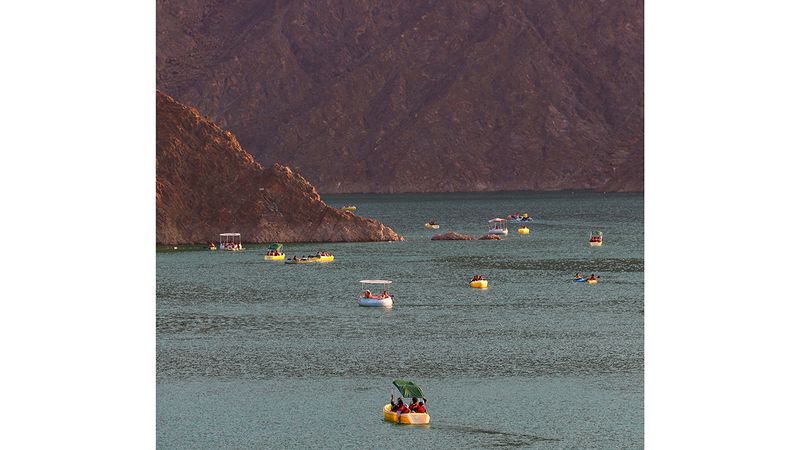 تبدو بحيرة حتّا كأنها مسرح مفتوح يجتمع فيه جمال الطبيعة مع روح المغامرة.. القوارب الملوّنة تنساب فوق الماء الهادئ، بينما تحيط بها الجبال الشاهقة، فتمنح المشهد هيبةً لا تشبه إلا الشتاء في حتّا.. في هذا الفضاء الرحب يصبح التجديف أكثر من نشاط ترفيهي، يتحوّل إلى تجربة شاعرية يعيشها الزوّار بين صفاء الماء وبرودة النسيم، هكذا يعكس شتاء حتّا جماله الحقيقي ليعكس لحظات بسيطة لكنها مُفعمة بالحياة.