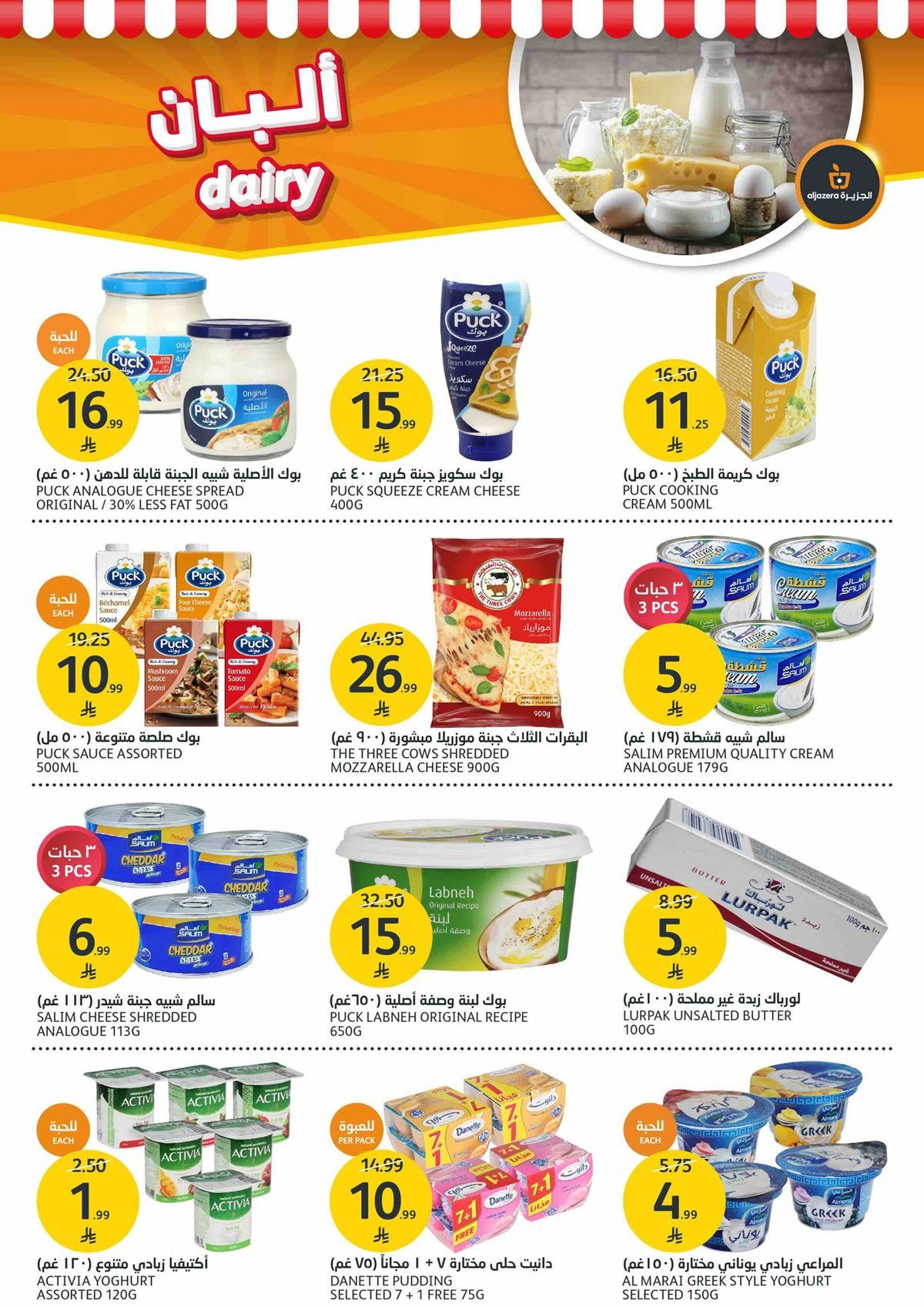 عروض أسواق الجزيرة الأسبوعية الأربعاء 19 جمادى الآخرة 1447هـ تبدأ بالأجهزة مثل قدر طبخ ستانلس وفحم شواء صغير وصانعة وافل كهربائية ومفرمة لحم يدوية ومقلاة سيراميك ثم تضم الأغذية الفاصوليا الخضراء والطماطم والبطيخ الأحمر والبرتقال العصيري والسمك السلمون الفيليه وقطع دجاج باقل الاسعار المناسبة للجميع