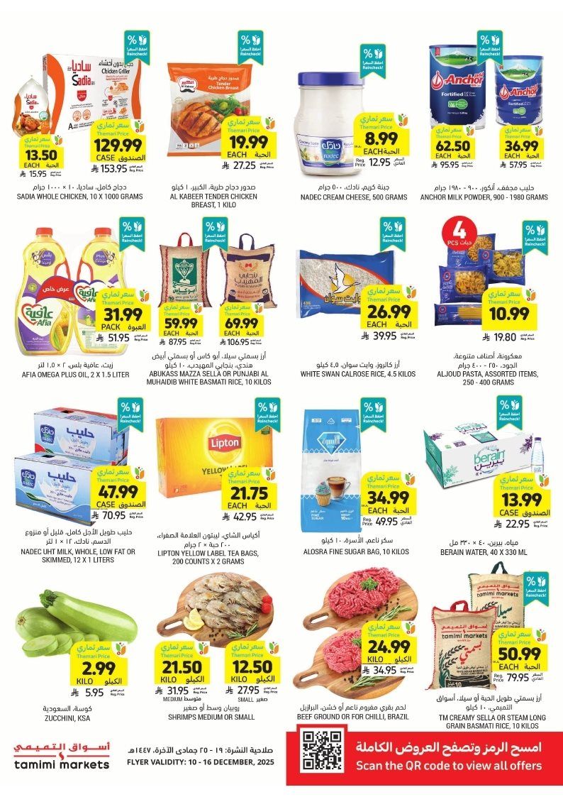 عروض التميمي الدمام الأربعاء 19 جماد الاخر 1447هـ تبدأ بالأجهزة مثل محمصة خبز منزلية ومروحة مطبخ صغيرة وقدر طهي ومفرمة خضار وخلاط حبوب ثم تضم الأغذية الكوسا والباذنجان والليمون الأصفر والأناناس وقطع اللحم المفروم و بنوفر كمان تغطية مباشرة لـ عروض بنده فقط ابقوا معنا علي موقعكم عروض توداي .