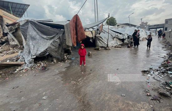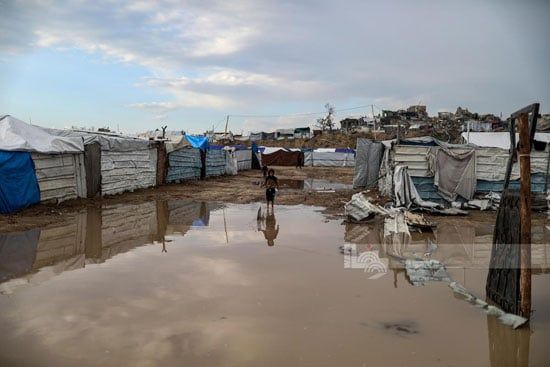 مياه الامطار تغرق خيام النازحين في حي الزيتون بمدينة غزة
