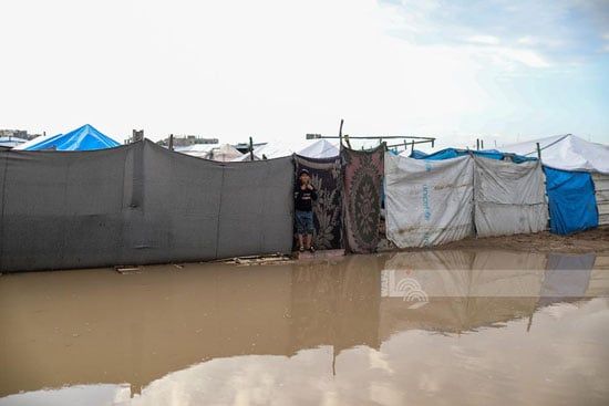 رصدت وكالة الأنباء الأوروبية صورا لغرق خيام النازحين فى مياه الأمطارالتى غمرت الخيام وانتشار برك المياه وسط الشوارع مع نقص حاد فى كل مقومات الحياة الطبيعية فى القطاع المحاصر منذ أكثر من سنيتين