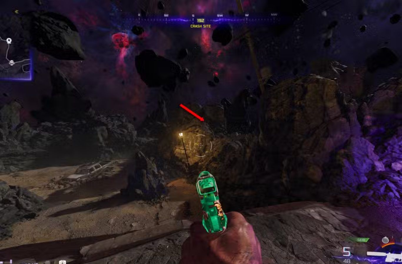 يبدأ اللاعب رحلته في منطقة Crash Site حيث يظهر الـ Teleporter في منتصف المنطقة تقريبًا ومن هنا يجب على اللاعب التوجه ببصره نحو الجدار الجنوبي الذي يحيط بالمكان إذ يقع Bonus Points في موضع مرتفع قرب الحافة العلوية للجدار وكأنه موضوع بعيدًا عن متناول اليد وهذه الطريقة في الإخفاء جزء من فلسلفة خرائط الزومبي التي تشجع اللاعب على مراقبة البيئة واستكشاف كل زاوية للحصول على أفضلية استراتيجية في بداية اللعب.