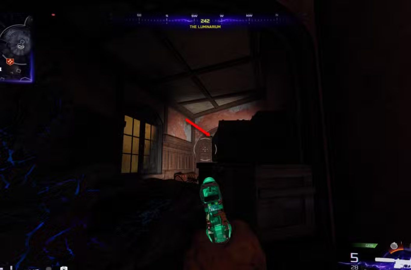 يمكن العثور على Max Ammo داخل The Luminarium وهو أحد أهم المرافق في الخريطة ويقع بشكل مباشر على المسار الواصل من Crash Site نحو الداخل وعند الاقتراب من مدخل Luminarium يجب على اللاعب النظر عبر الفتحة الموجودة على الجهة اليسرى حيث يظهر Max Ammo مستقرًا فوق حافة خلف القوس الحجري المائل إلى اليسار ويتم وضعه في هذا الموضع عمدًا ليكون بعيدًا عن متناول اللاعب مباشرة ويحتاج إلى ملاحظة دقيقة لتحديد مكانه بدقة وسط الظلال والأعمدة.