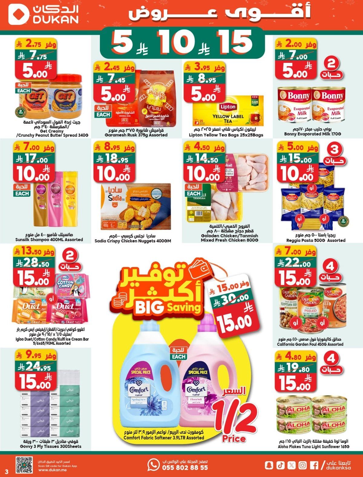 عروض الدكان جدة الأسبوعية الخميس 11 ديسمبر 2025 ـ تبدأ بالأغذية التي تشمل الجزر والخس والبطاطس والزنجبيل الطازج وتمتد للفواكه مثل التوت والكمثرى والموز والجريب فروت الوردي ثم اللحوم والسمك الباغة والحليب ثم تمتد إلى الأجهزة مثل سخان ماء ومحضر عصير وشواية كهربائية وقطاعة خضار ومفرمة يدوية