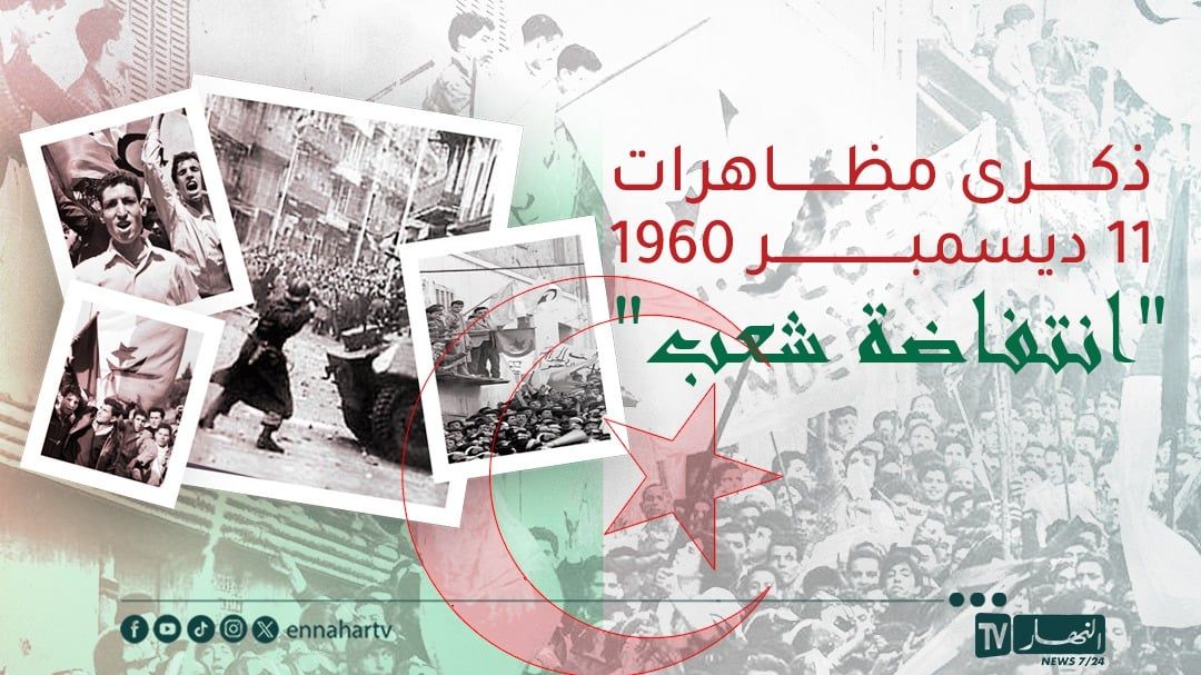 هذه المناسبة الوطنية العظيمة، التي تعتبر واحدة من أكثر اللحظات تأثيرًا في مسار كفاح شعبنا العظيم. حين خرج الجزائريون في 11 ديسمبر 1960 ليجهروا بموقفهم الشجاع، ويرفعوا صوت الحق في وجه الظلم، مؤكدين أن الوطن أكبر من كل محاولات الطمس والهيمنة.
