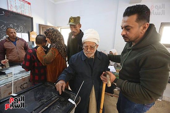 رجل مسن يحرص على المشاركة بانتخابات مجلس النواب