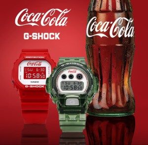 سبق أن تعاونت Casio G-Shock مع Coca-Cola في إصدارين محدودين، هما DW5600CC23-4 باللون الأحمر الكلاسيكي، وDW6900CC23-3 باللون الأخضر الشفاف، حيث حملا هوية كوكاكولا الكاملة، وتم شحنهما داخل علب تحمل علامات مشتركة.