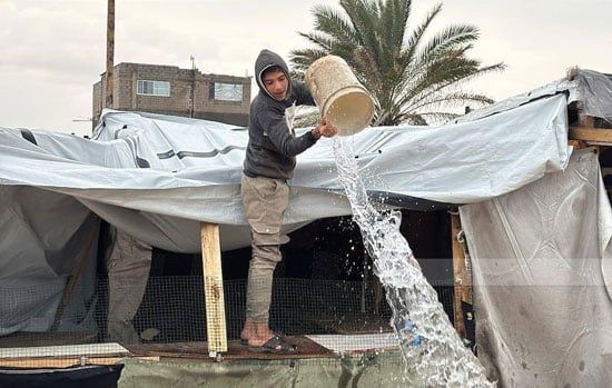 ونقلت وكالة الأنباء الأوروبية مشاهد مؤلمة لمعاناة النازحين داخل الخيام، مع تعرض قطاع غزة لمنخفض جوي شديد أدى إلى هطول أمطار غزيرة وحدوث فيضانات عارمة اجتاحت خيام الإيواء المؤقت، في القطاع المحاصر منذ أكثر من عامين.