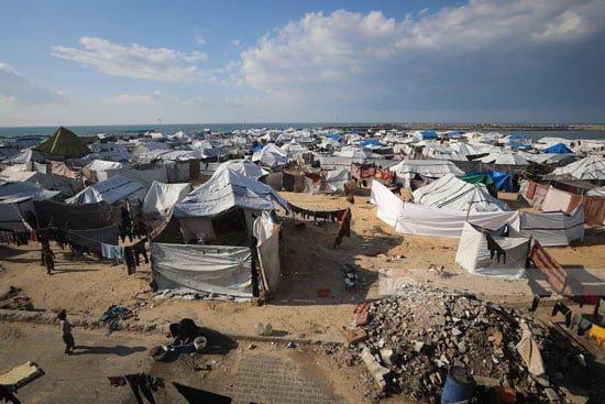 ويعيش النازحون أوضاعًا إنسانية بالغة الصعوبة، في ظل نقص حاد في مقومات الحياة الأساسية من غذاء وملبس ومأوى، بالتزامن مع استمرار منع قوات الاحتلال دخول المساعدات الإنسانية إلى سكان قطاع غزة.