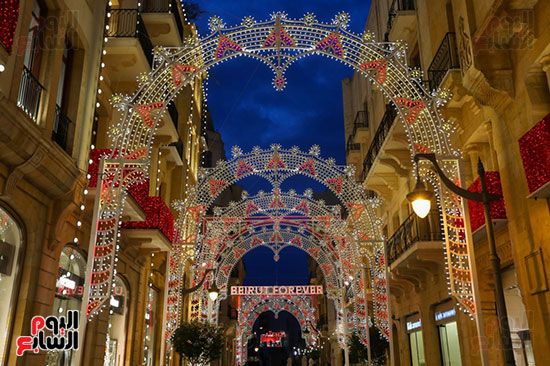 السبت، 13 ديسمبر 2025 12:00 صتزينت شوارع العاصمة اللبنانية بيروت بالأضواء الملونة وزينة عيد الميلاد استعدادًا لاستقبال العام الميلادي الجديد 2026 واحتفالات الكريسماس، وسط أجواء من البهجة والفرحة التى عمّت الشوارع.